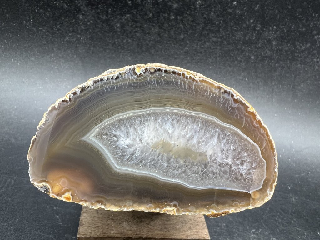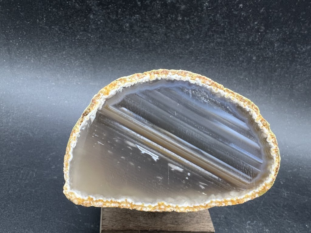 Achát je jeden z najkrajších a najvyhľadávanejších prírodných kameňov vďaka svojim vrstevnatým vzorom a pestrej farebnej palete. Tento achát pochádza z oblasti Brazílie, ktorá je známa bohatstvom kvalitných achátových výskytov.