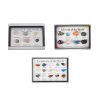 Minerály a skameneliny v tejto sade sú uložené v kartónovej krabici z kvalitnej lepenky. Krabica má tiež 12 plastových okienok. Vnútorný rozmer je 265x200x55 mm.